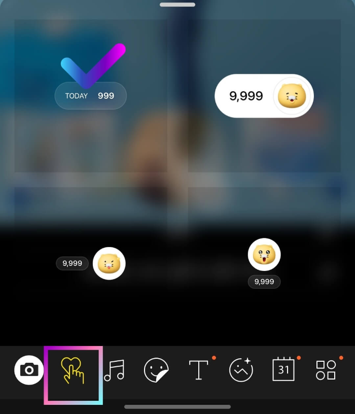 이것도 today 위젯과 같이 카카오톡 프로필 위젯으로 스티커를 누르면 하트가 올라가는 인스타그램 좋아요와 비슷한 역할을 합니다. 요즘 학생들 사이에서 인기몰이 중으로 공감은 자기 자신을 제외하고 여러 번 누를 수 있습니다. 최대 +9,999개까지 표시됩니다.