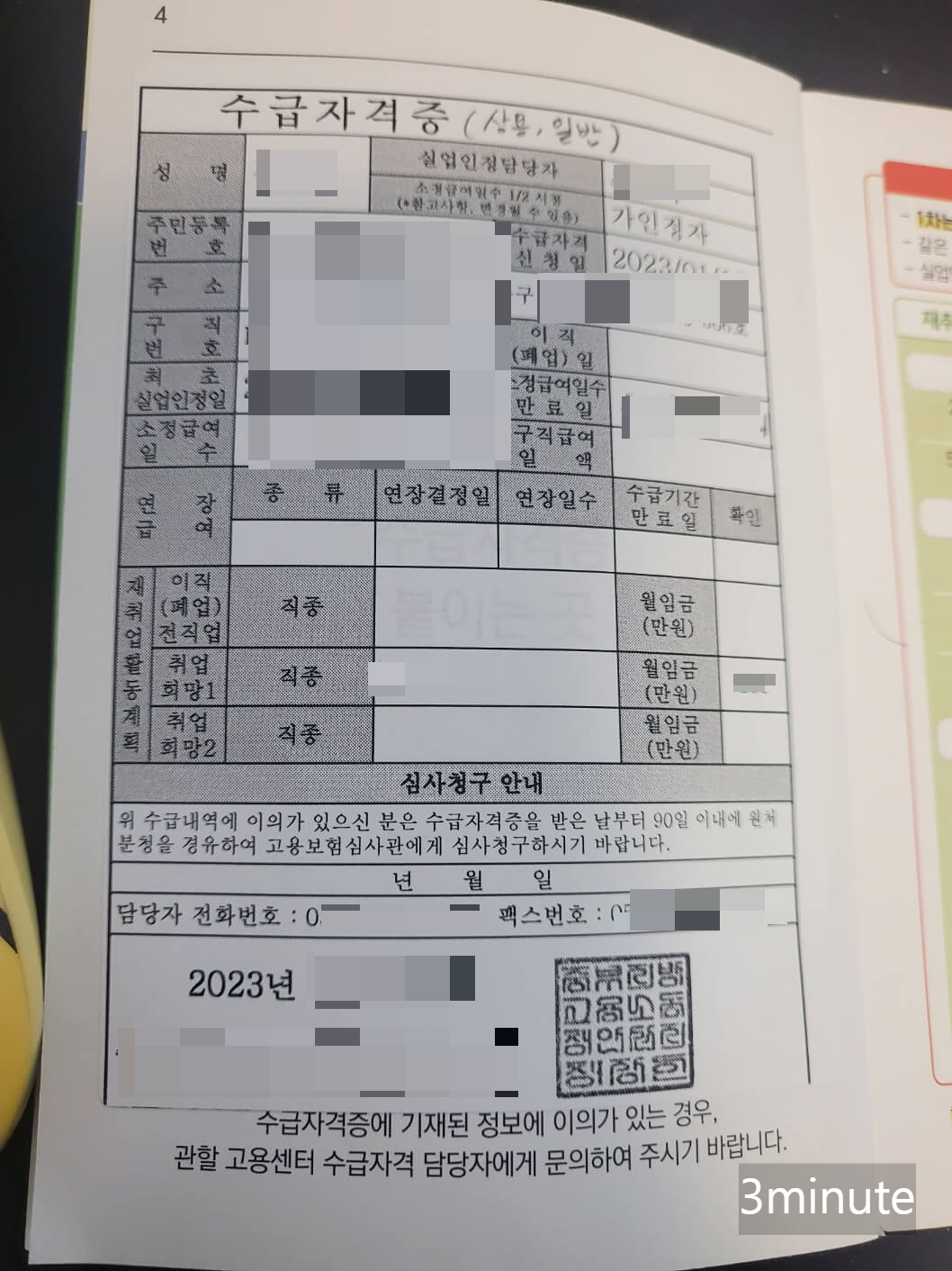 ✔ 취업희망카드에 있는 수급자격증을 받은 날부터 90일 이내에 관할 고용센터 수급자격 담당자에게 문의해야 합니다.